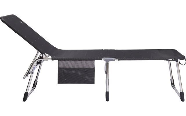 Die Crespo AL-363 Sonnenliege ist außergewöhnlich, da sie extra hoch und extra breit ist. Die verstärkte Aluminiumstruktur verfügt über 3 hohe Beine. Die verstellbare Rückenlehne in 4 Positionen sorgt für einen optimalen Komfort. Der Stoff wird unten durch eine elastische Schnur fixiert, die es ermöglicht, die Festigkeit einzustellen. Die Sonnenliege hat eine zusätzliche Tasche extra zum Aufbewahren von Büchern, Schlüssel, Handy etc. Einmal zusammengeklappt ist die Liege sehr einfach zu transportieren.